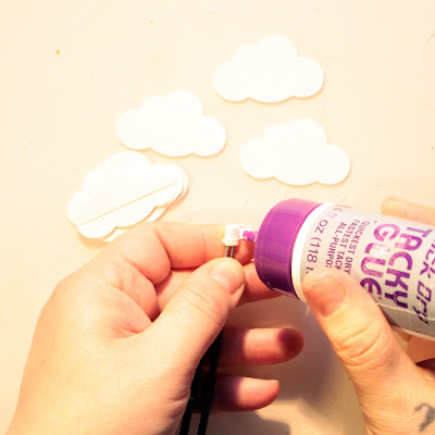 Otin viimeisen kolme ehjää pilveä, joihin lisäsin liiman alareunoihin.